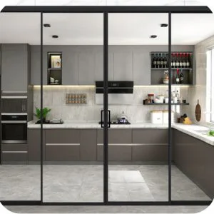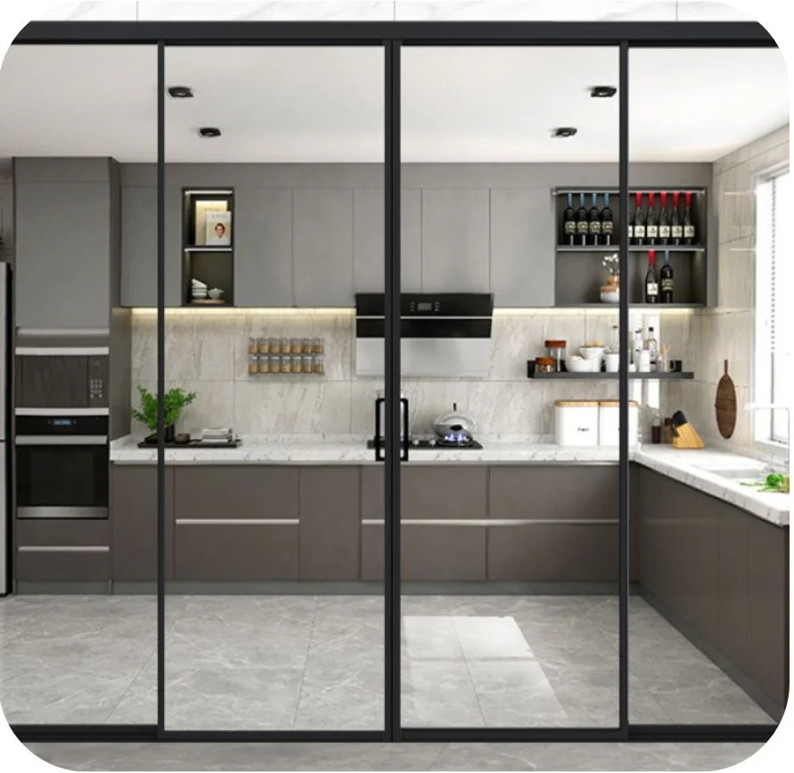 Dùng làm cửa trượt ngăn bếp – phòng khách, cửa ra sân vườn hoặc ban công.