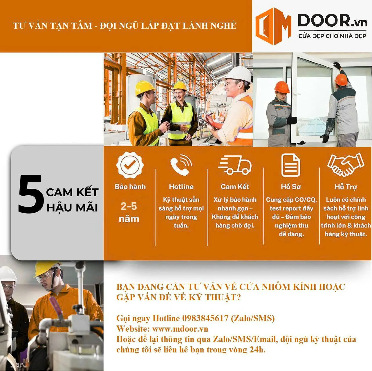 ✅ 5 CAM KẾT HẬU MÃI TỪ MDOOR – Tìm thợ cắp đặt cửa sổ TP HCM